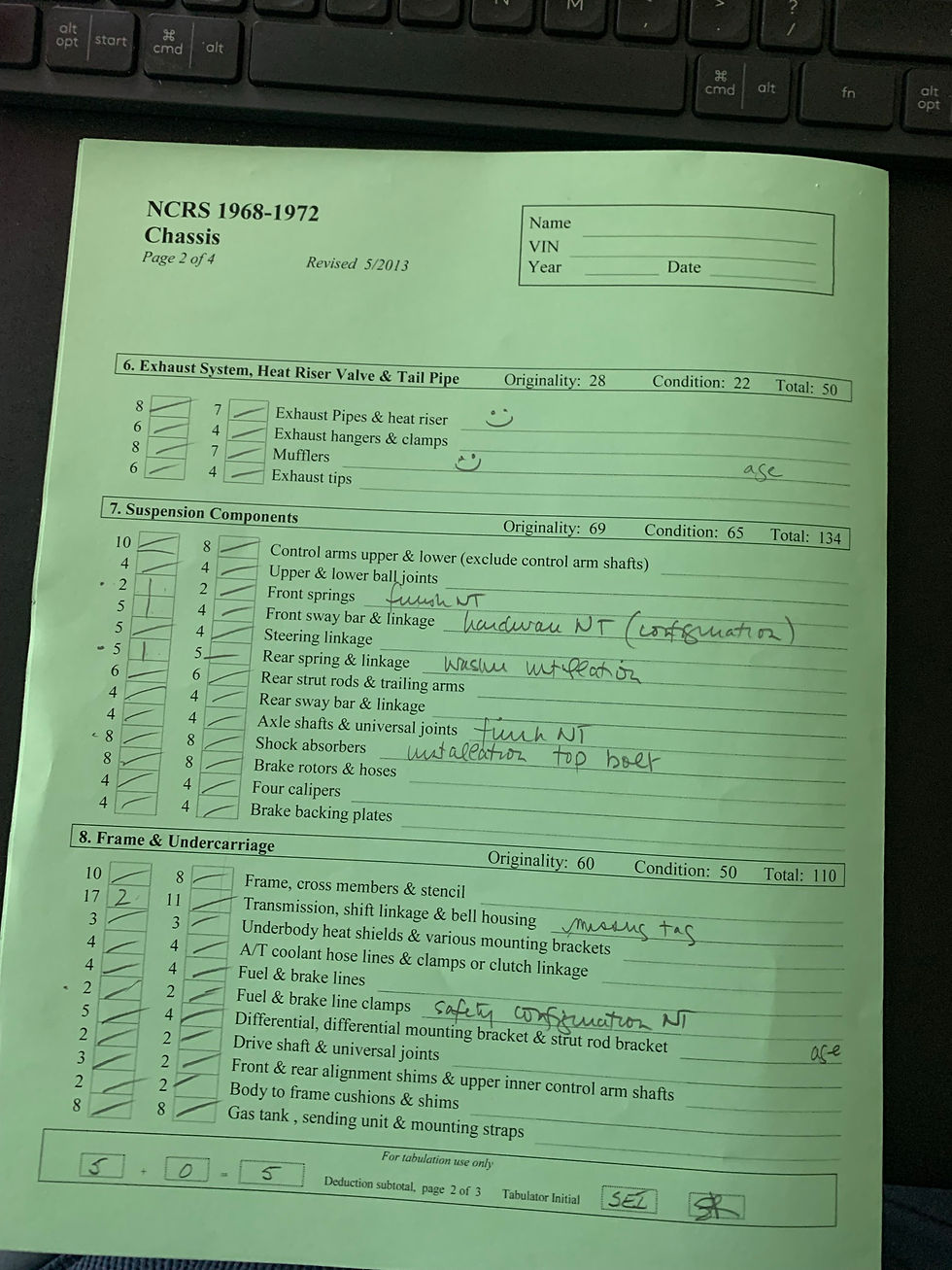 Here were the 4 pages of judging sheets on Chassis. Note that I lost 5 configuration points for an incorrect oil filter (not white AC Delco)!
